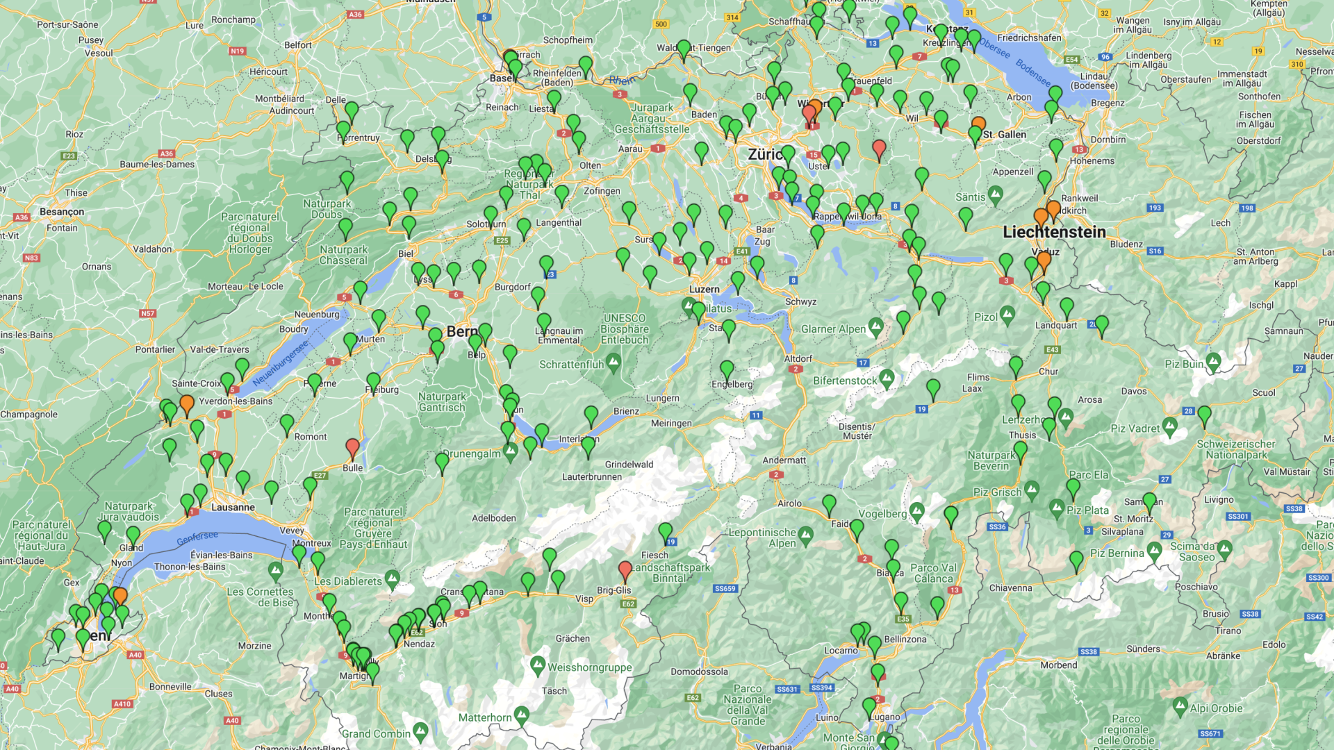 Die beiden Mahnwandnetze umfassen aktuell 250 Ex. Standorte. Die BFU hat ihrem Netz an den Autobahnauffahrten rund 50 Ex. Stellen. Der FVS besitzt 200 Ex. Standorte an ausserorts an Kantonsstrassen. Beide Netze sind in der ganzen Schweiz in allen Sprachregionen und Kantonen vertreten.